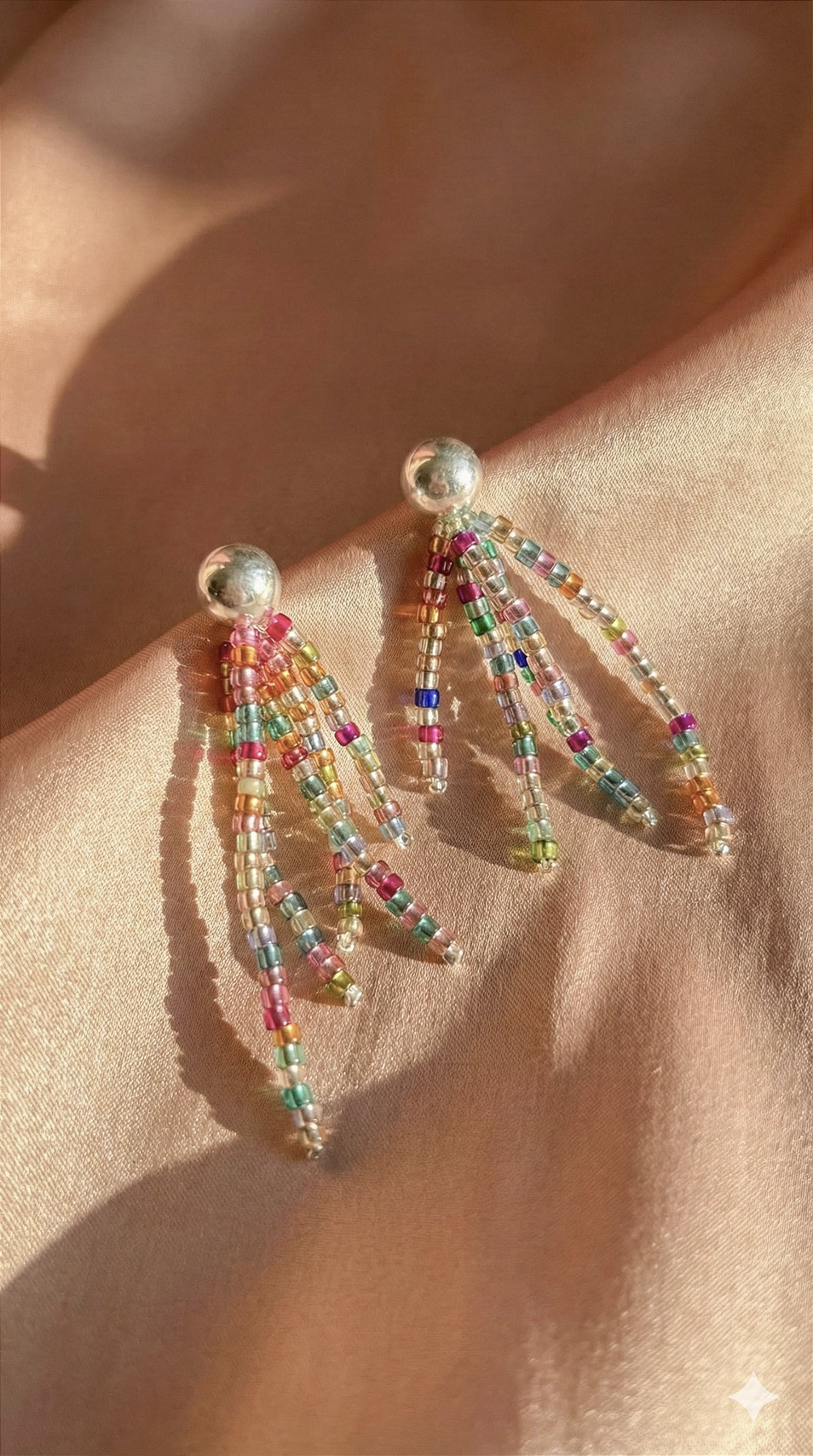 O Brinco Folie é uma "peça statement". Para um visual sofisticado, use com o cabelo preso (coque ou rabo de cavalo alto), permitindo que o movimento das franjas seja o protagonista. Combina perfeitamente com camisas de linho, vestidos fluidos ou até um jeans com blazer para um toque de cor no dia a dia.