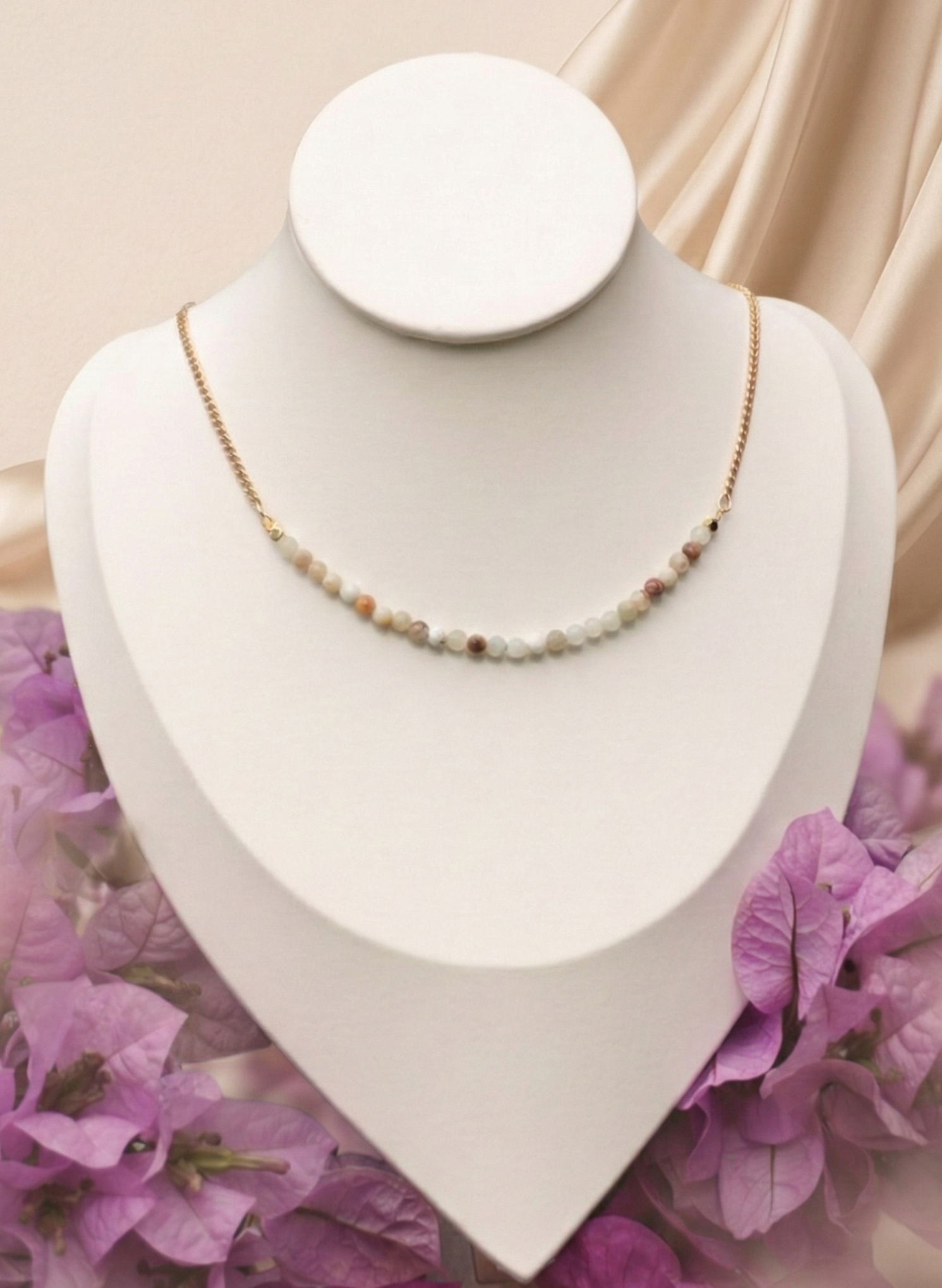 Modelo: Colar de pedras naturais com corrente veneziana delicada.