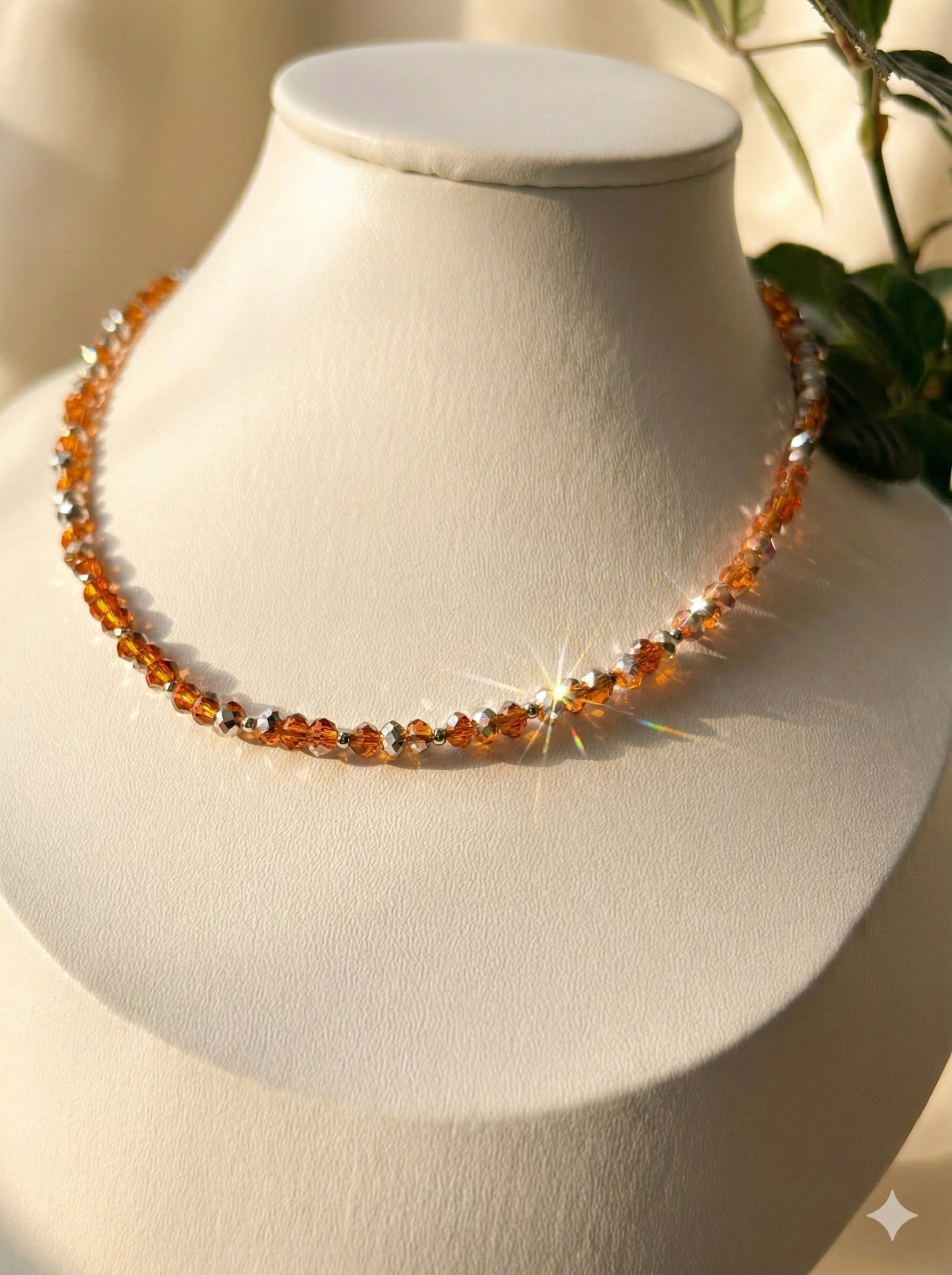 A Choker Solei é uma celebração à luminosidade e ao calor. Unindo o brilho vibrante dos cristais facetados laranja à sofisticação do banho em prata, esta peça foi desenhada para ser o ponto de luz estratégico do seu visual. Seu design rítmico e moderno evoca a alegria de um pôr do sol, sendo o acessório ideal para quem busca uma peça marcante, mas com a delicadeza característica da éCLAT.